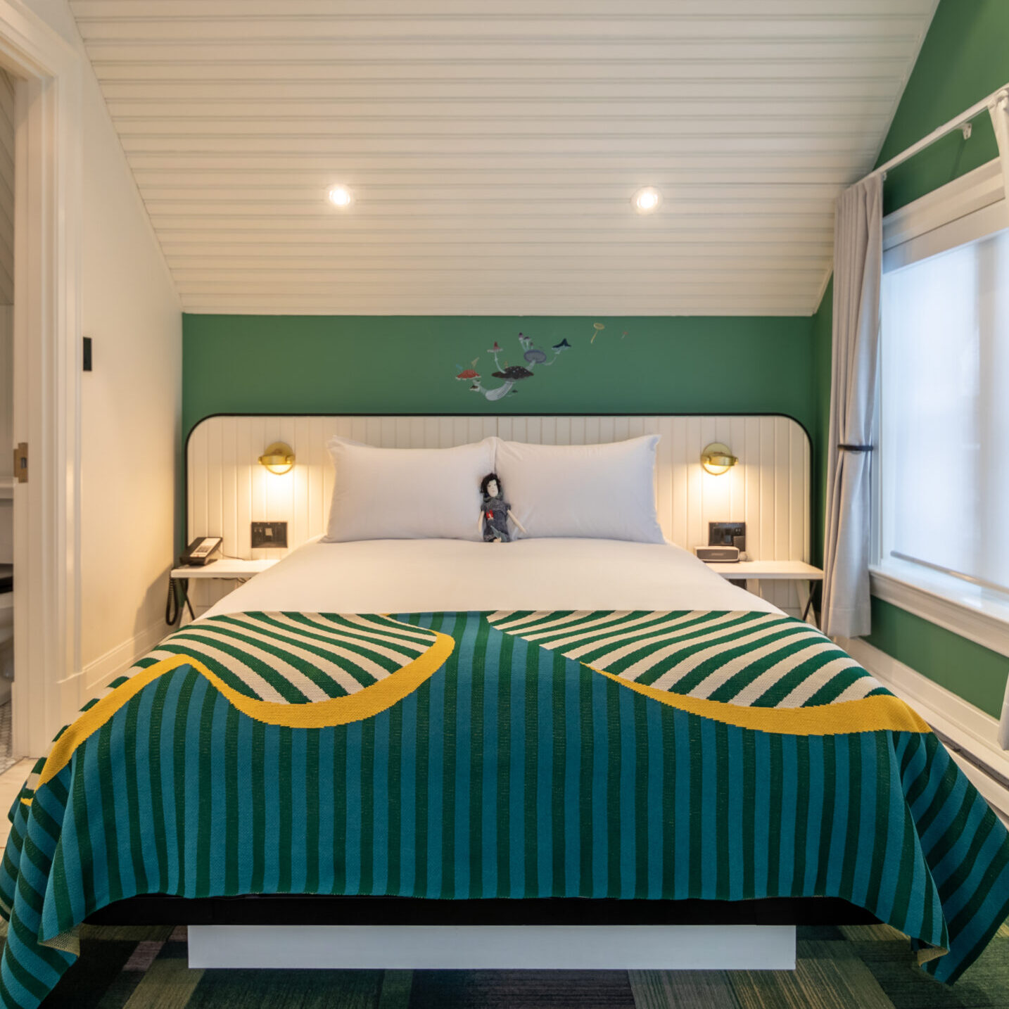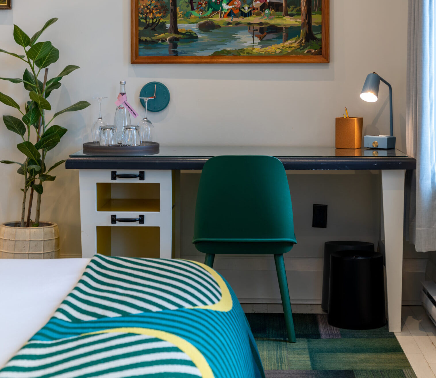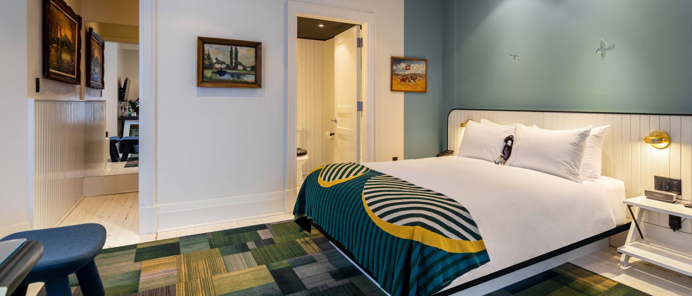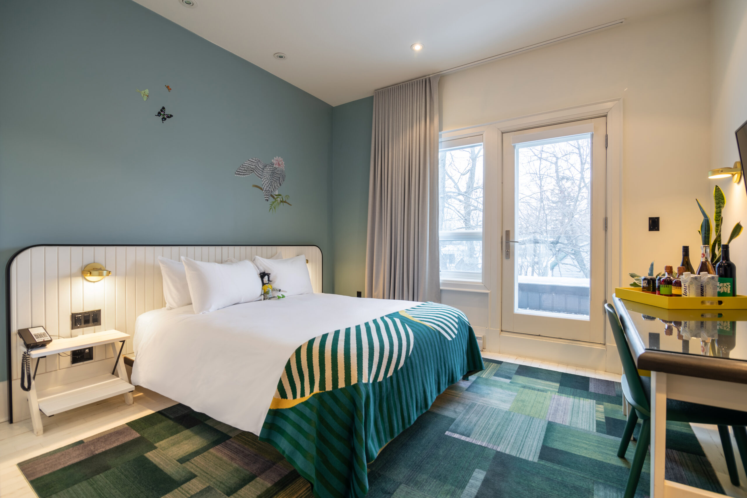 Our thoughtfully designed rooms blend county comfort with elevated style. Outfitted with modern amenities, cozy furnishings, and one-of-a-kind art, each space feels personal and inspiring. Select rooms offer peaceful lake or stream views, making your stay feel grounded in nature and full of character.