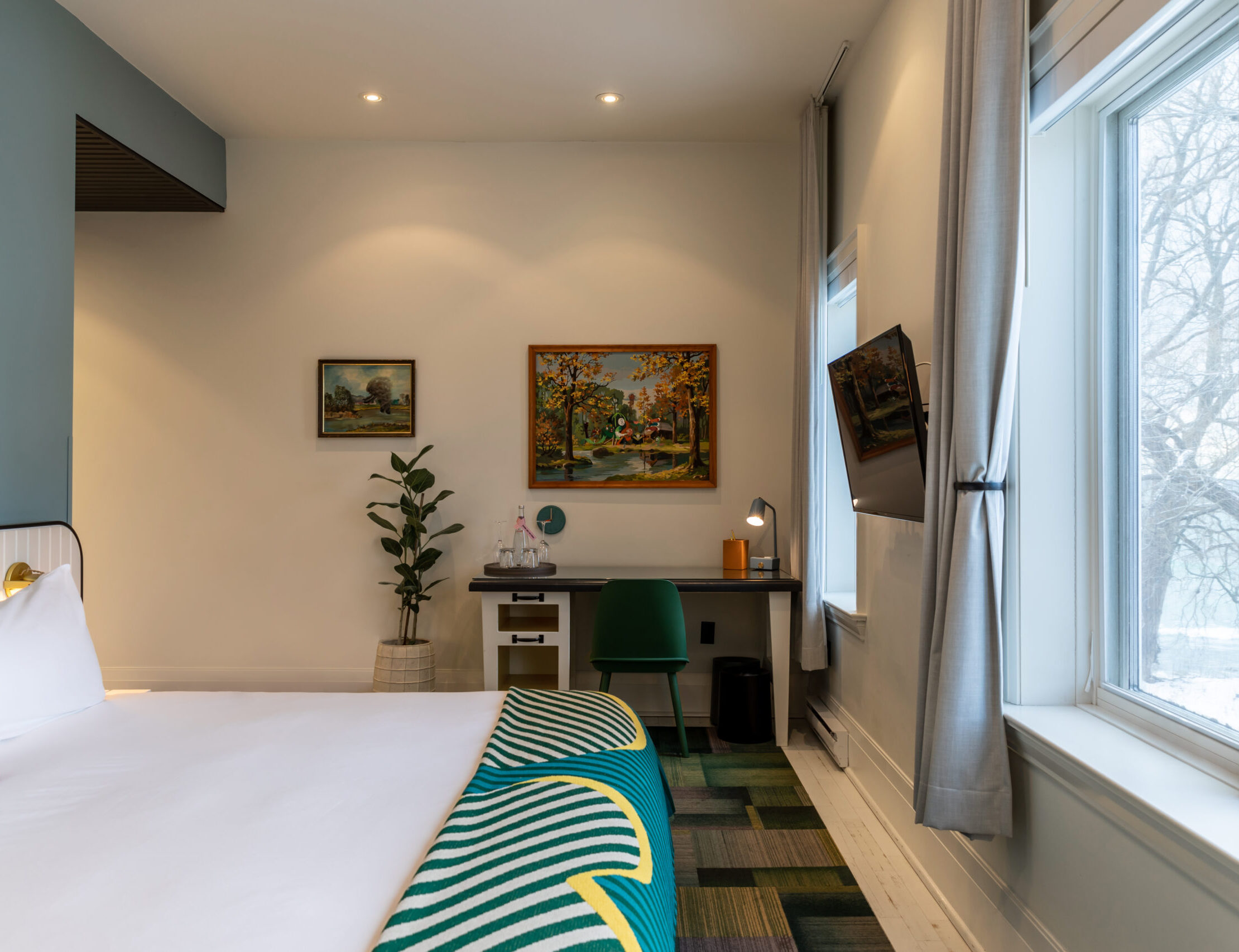 Set against a serene natural backdrop, the Creekside Room offers calming views of the creek and surrounding landscape. Designed with organic textures and thoughtful details, it's a cozy retreat made for rest and reset.